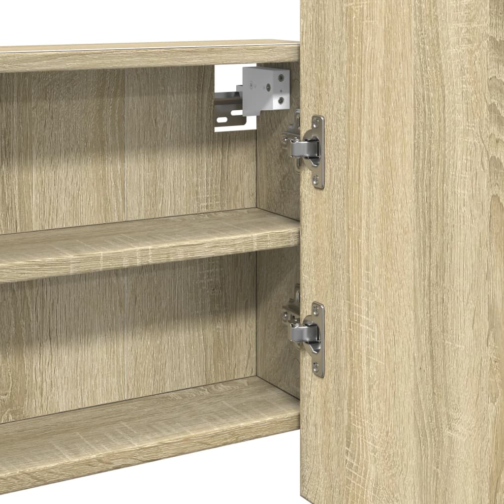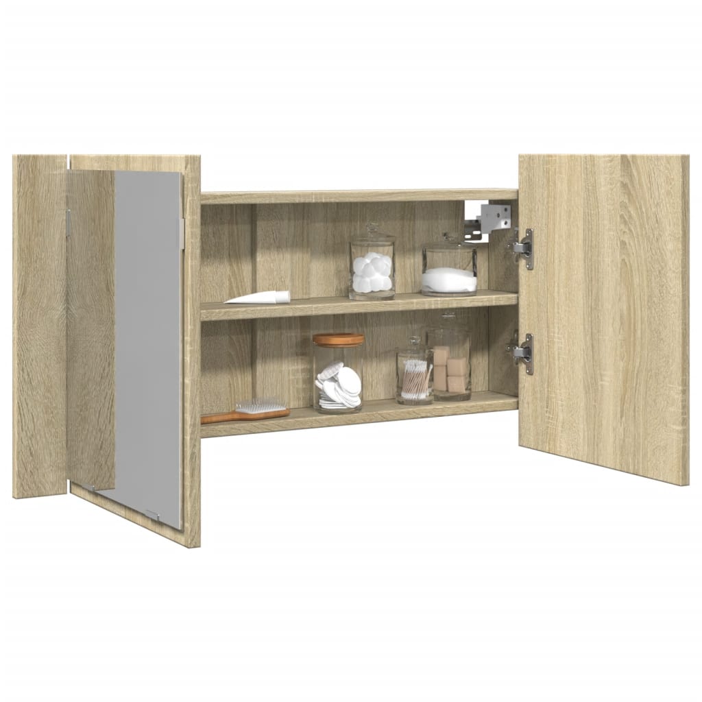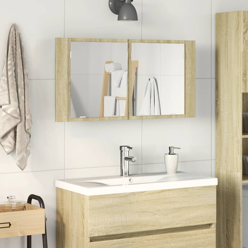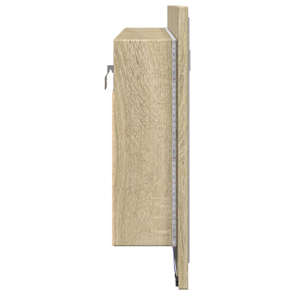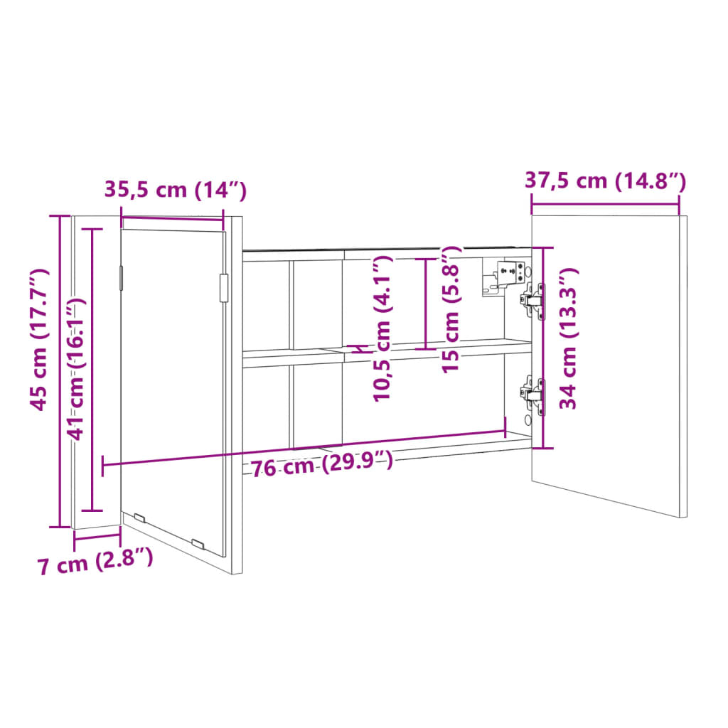 Añade un toque de apariencia estéticamente agradable con este armario de espejo LED, que es perfecto para tu baño. Material duradero: La estructura del armario con espejo está hecha de madera de ingeniería. La madera de ingeniería es de una calidad excepcional con una superficie lisa y cuenta con la fuerza, la estabilidad y la resistencia a la humedad.Luces LED: Este armario con espejo está equipado con vibrantes luces LED. Con una variedad de configuraciones personalizables, puedes cambiar el color de las luces fácilmente e incluso programarlas para que varíen automáticamente.Ahorro de espacio: El mueble con espejo de tocador se puede montar en la pared para agregar espacio de almacenamiento adicional. De esa forma, puedes liberar espacio en el piso y tener tu ambiente ordenado y limpio.Fácil de montar: Este mueble de maquillaje con espejo viene con soportes para un fácil montaje en la pared.Amplio espacio de almacenamiento: Este armario con espejo tiene 2 compartimentos que brindan mucho espacio para almacenar y mantener bien organizados tus artículos básicos de maquillaje. Información útil:Los tornillos y los tacos para el interior de la pared no están incluidos. Recomendamos encontrar y utilizar tornillos y tacos adecuados específicamente para las paredes. Si no estás seguro, puedes consultar con un profesional. Lee y sigue cada paso de las instrucciones.El producto tiene un conector USB que necesita una fuente de alimentación USB certificada de 5 V (no incluida).