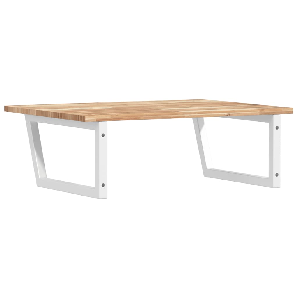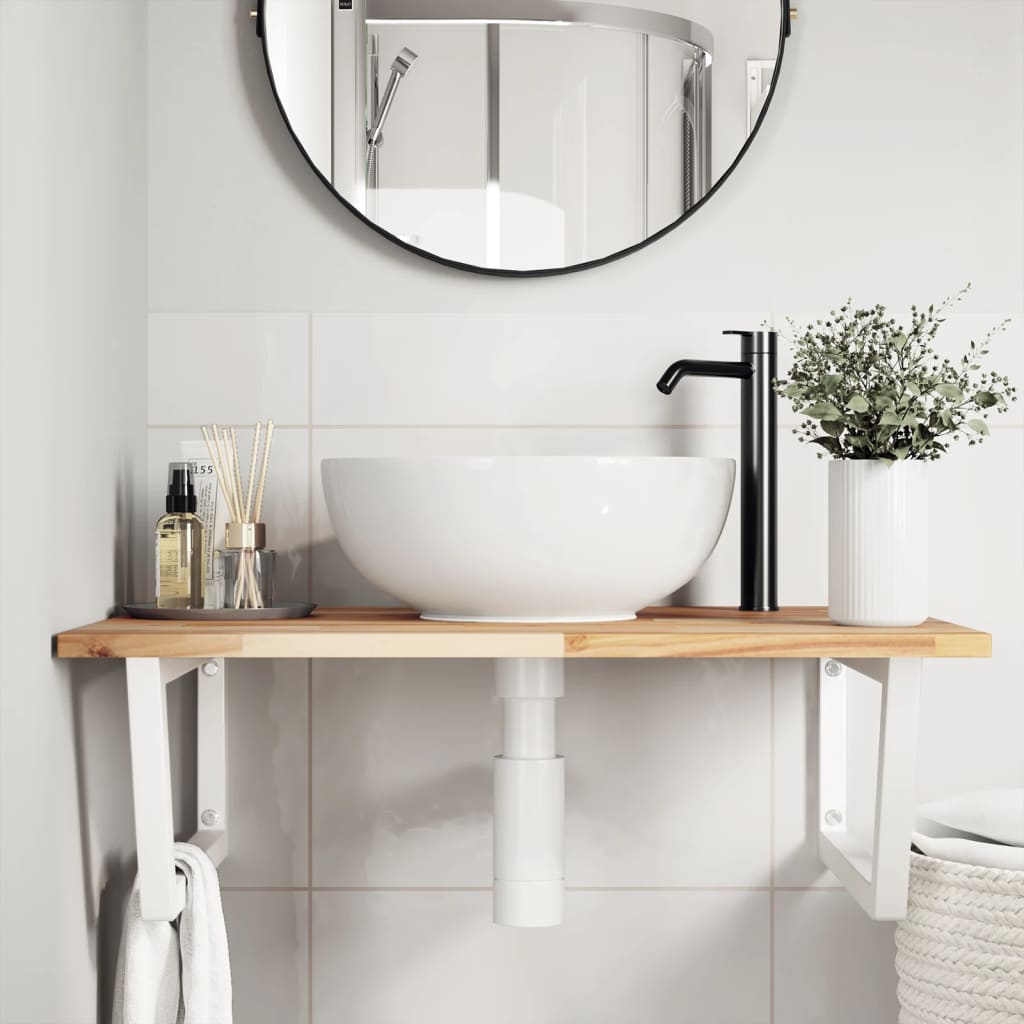 El estante de lavabo montado en la pared se fija de forma segura a la pared, proporcionando una solución elegante y que ahorra espacio para tu baño. Robusto y duradero: Este estante de lavabo se combina con una estructura de acero y una tabla de madera de acacia maciza, lo que lo hace robusto, estable y duradero.Ahorro de espacio: El estante de lavabo flotante tiene un amplio espacio para almacenar cremas y artículos pequeños. Gracias a la forma trapezoidal, puedes colgar toallas u otras cosas en el soporte para ahorrar espacio.Fácil de usar: La encimera viene sin perforar para permitir que el lavabo se monte a la izquierda, a la derecha o en el centro, según los requisitos de la habitación. Gracias a los orificios pretaladrados en el soporte, se puede montar fácilmente con el tablero y montar en la pared.Diversos usos: Gracias a su diseño moderno, proporciona espacio adicional para varios tipos de baños. Información útil:Los tornillos no están incluidos, puedes comprar los tornillos por separado según la información que se proporciona a continuación.Fijación a la pared: 2 tornillos de expansión M8 por soporteTabla de madera: 2 tornillos M5x18 (T=2) o 2 tornillos M5x20 (T=2,5/4cm) por soporte