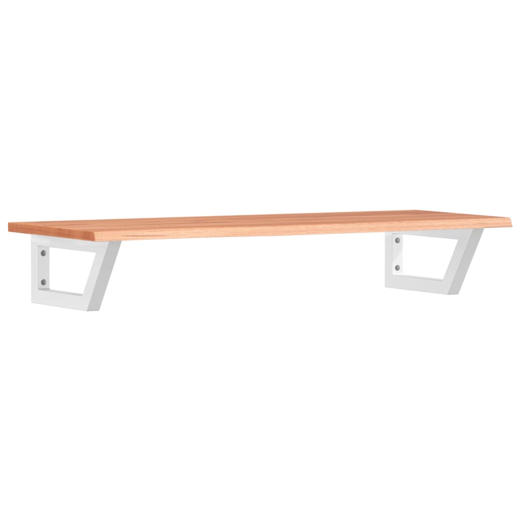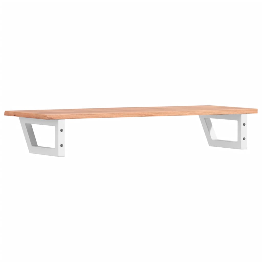 El estante de lavabo montado en la pared se fija de forma segura a la pared, proporcionando una solución elegante y que ahorra espacio para tu baño. Robusto y duradero: Este estante de lavabo se combina con una estructura de acero y una superficie de madera maciza de roble, lo que lo hace resistente, estable y duradero.Ahorro de espacio: El estante de lavabo flotante tiene un amplio espacio para almacenar cremas y artículos pequeños. Gracias a la forma trapezoidal, puedes colgar toallas u otras cosas en el soporte para ahorrar espacio.Fácil de usar: La encimera viene sin perforar para permitir que el lavabo se monte a la izquierda, a la derecha o en el centro, según los requisitos de la habitación. Gracias a los orificios pretaladrados en el soporte, se puede montar fácilmente con el tablero y montar en la pared.Diversos usos: Gracias a su diseño moderno, proporciona espacio adicional para varios tipos de baños. Información útil:Los tornillos no están incluidos, puedes comprar los tornillos por separado según la información que se proporciona a continuación.Fijación a la pared: 2 tornillos de expansión M8 por soporteTabla de madera: 2 tornillos M5x18 (T=2) o 2 tornillos M5x20 (T=2,5/4cm) por soporteAl ser un producto natural, la madera puede presentar nudos e imperfecciones que rellenamos con rellenos para garantizar un aspecto liso.