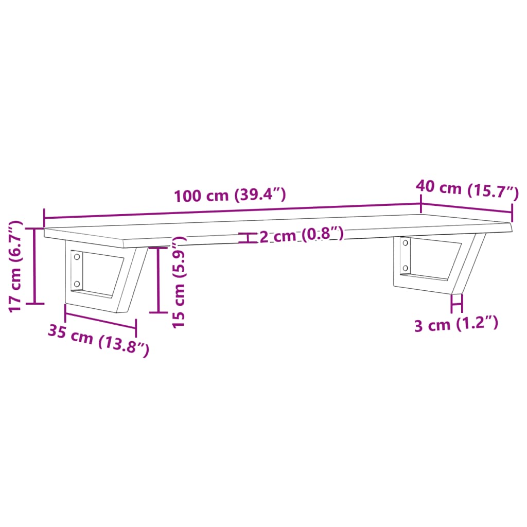 El estante de lavabo montado en la pared se fija de forma segura a la pared, proporcionando una solución elegante y que ahorra espacio para tu baño. Robusto y duradero: Este estante de lavabo se combina con una estructura de acero y una superficie de madera maciza de roble, lo que lo hace resistente, estable y duradero.Ahorro de espacio: El estante de lavabo flotante tiene un amplio espacio para almacenar cremas y artículos pequeños. Gracias a la forma trapezoidal, puedes colgar toallas u otras cosas en el soporte para ahorrar espacio.Fácil de usar: La encimera viene sin perforar para permitir que el lavabo se monte a la izquierda, a la derecha o en el centro, según los requisitos de la habitación. Gracias a los orificios pretaladrados en el soporte, se puede montar fácilmente con el tablero y montar en la pared.Diversos usos: Gracias a su diseño moderno, proporciona espacio adicional para varios tipos de baños. Información útil:Los tornillos no están incluidos, puedes comprar los tornillos por separado según la información que se proporciona a continuación.Fijación a la pared: 2 tornillos de expansión M8 por soporteTabla de madera: 2 tornillos M5x18 (T=2) o 2 tornillos M5x20 (T=2,5/4cm) por soporteAl ser un producto natural, la madera puede presentar nudos e imperfecciones que rellenamos con rellenos para garantizar un aspecto liso.