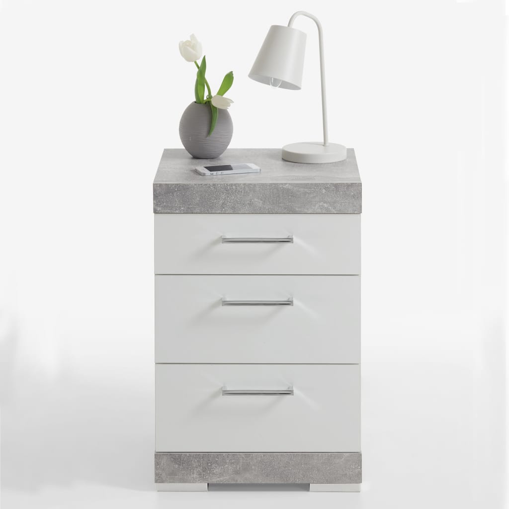La mesita de noche de la marca FMD será un aporte llamativo para tu dormitorio. Tiene un diseño retro, con tres cajones que ofrecen un amplio espacio donde guardar lo que quieras tener a mano. Además, sobre la mesita de noche, puedes colocar el despertador, tu libro favorito o una lamparita. La elegante mesilla de FMD está hecha de aglomerado con recubrimiento de melamina, con un sobrio color gris hormigón que se adapta a casi cualquier decoración.