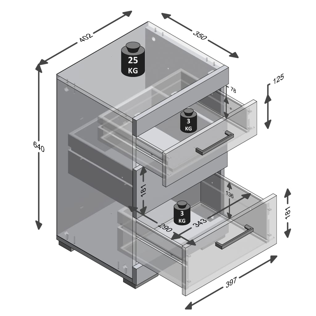 - Cada compartimento soporta hasta 3 kg (la superficie, hasta 25 kg)