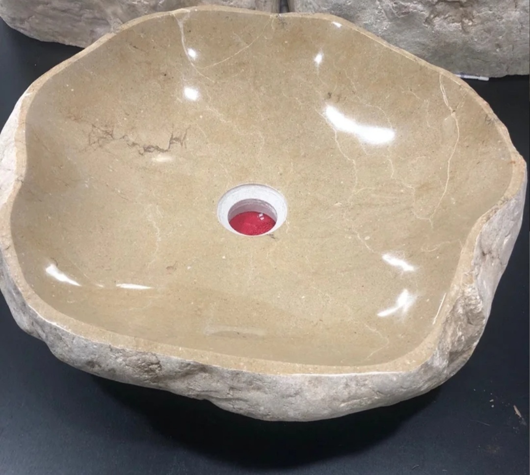 Lavabo de piedra natural fabricado en una sola pieza . Productos únicos al ser piezas naturales. No hay ningún producto igual y pueden variar en sus tonalidades.