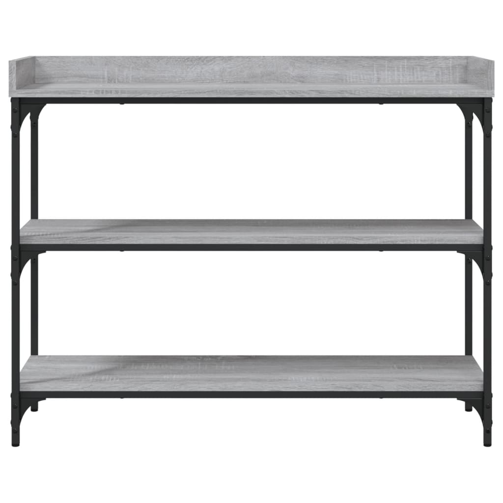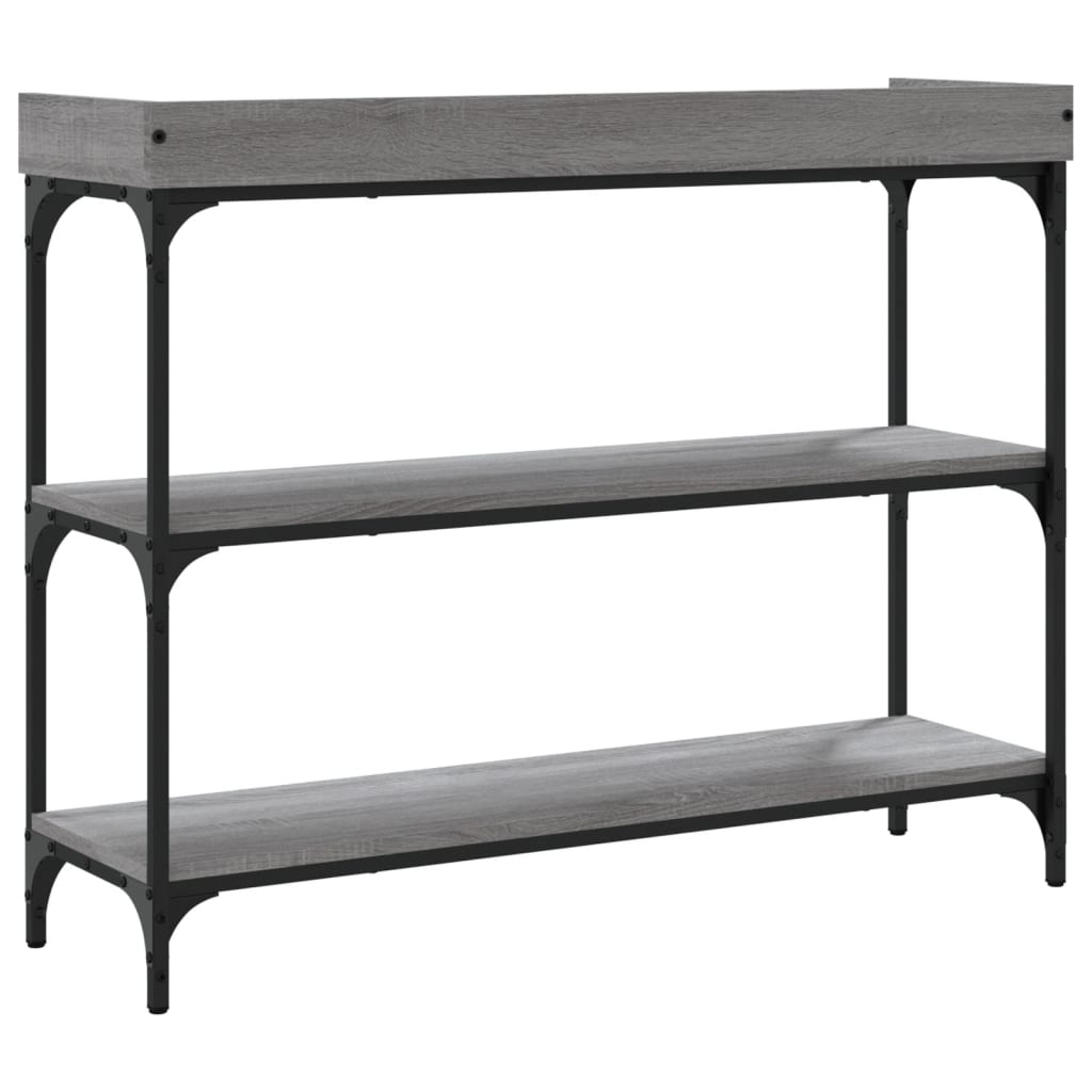 Añade un toque de elegancia a la entrada, el salón o el pasillo con esta elegante mesa consola. Material duradero: La madera de ingeniería tiene una calidad excepcional, con una superficie lisa, y también se caracteriza por su fuerza, estabilidad y resistencia a la humedad. Hecha de madera de ingeniería, la mesita de sofá es fácil de limpiar.Amplio espacio de almacenaje: La mesa de recibidor ofrece un amplio espacio de almacenaje para mantener bien organizados y al alcance revistas, libros, artículos decorativos y otros objetos de uso diario.Patas ajustables: Las patas ajustables con almohadillas de plástico mantienen el equilibrio de la mesa sobre terrenos irregulares y aumentan su estabilidad.Estructura metálica: La estructura metálica añade un estilo industrial a la casa, además de garantizar su durabilidad y estabilidad. Advertencia:Para evitar que vuelque, este producto debe usarse con el dispositivo de fijación a la pared incluido.
