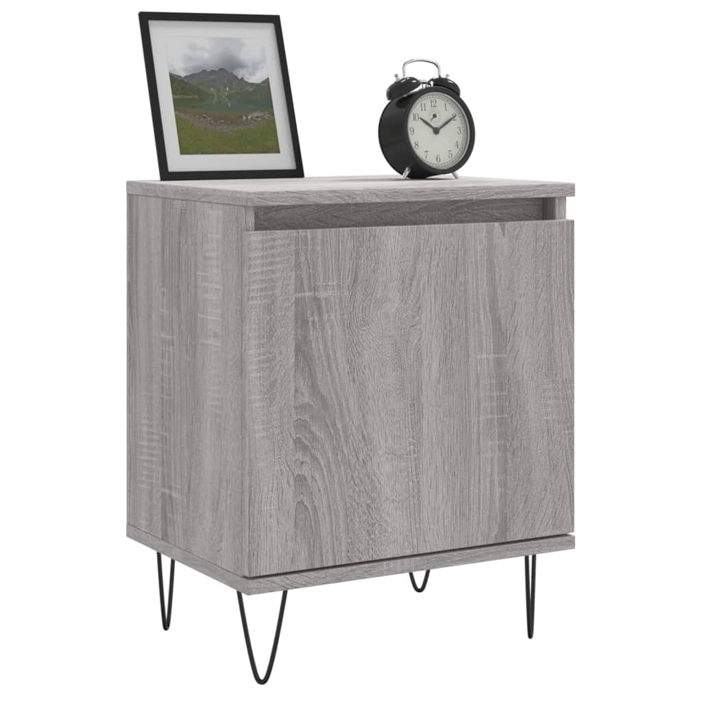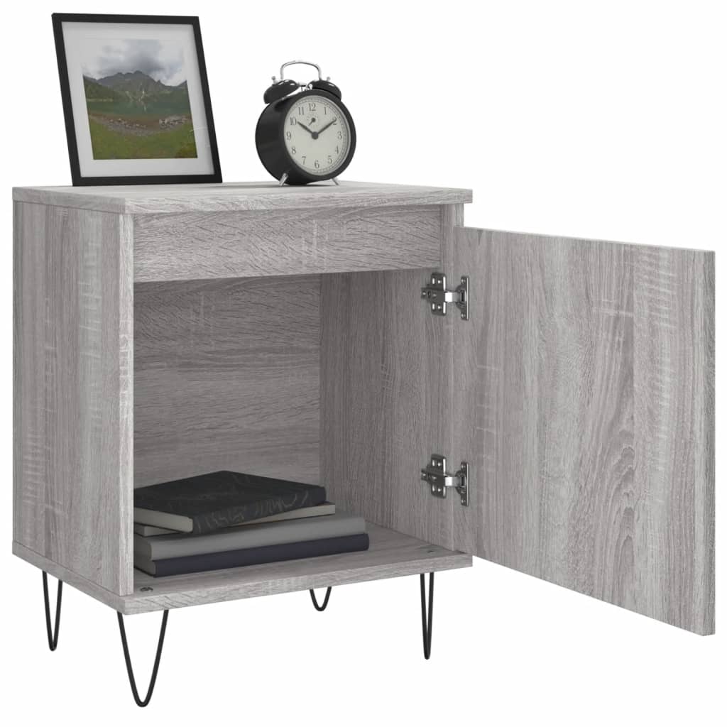 Estas mesitas de noche, con un diseño elegante, son un aporte atemporal para la decoración de tu hogar. Material duradero: La madera de ingeniería es de una buena calidad con superficie lisa y también se caracteriza por su fuerza, estabilidad y resistencia a la humedad. Hecha de madera de ingeniería, la mesita de noche es fácil de limpiar con un paño húmedo.Amplio espacio de almacenaje: Con 1 compartimento, la mesita de noche ofrece un práctico espacio de almacenaje para mantener bien organizados y al alcance revistas, libros, mandos a distancia y otros artículos pequeños.Superficie estable: La estable superficie de la mesita de noche se puede usar para colocar objetos decorativos como marcos de fotos y plantas. Información útil:La puerta se puede instalar tanto en el lado izquierdo como en el derecho. Advertencia:Para evitar que vuelque, este producto debe usarse con el dispositivo de fijación a la pared incluido.