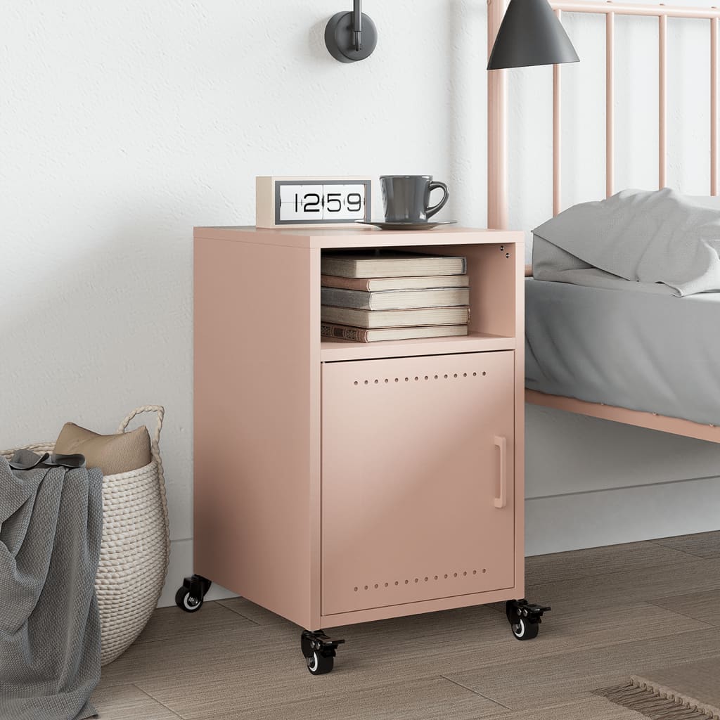 Esta mesita de noche, con un diseño elegante, es un aporte atemporal para la decoración de tu hogar. Material estable: La estructura de la mesita de noche está hecha de acero laminado en frío. El acero laminado en frío es un tipo de acero con bajo contenido en carbono producido mediante un método de "laminación en frío" y procesado a temperaturas ambiente cercanas a las normales. El acero laminado en frío tiene una superficie más lisa, mayor resistencia y mayor precisión.Amplio espacio de almacenaje: Este mueble ofrece un práctico espacio de almacenaje para mantener revistas, libros, mandos a distancia y otros objetos pequeños bien organizados y al alcance.Fácil de mantener: La mesa se limpia fácilmente con un paño húmedo y requiere menos mantenimiento.Fácil de mover: Esta mesa auxiliar tiene 4 ruedas, lo que hace que se mueva con flexibilidad y se estacione de manera estable en cualquier momento.Tirador práctico: La mesita de noche viene con un tirador que facilita abrir y cerrar el mueble, además de añadir un toque de belleza.