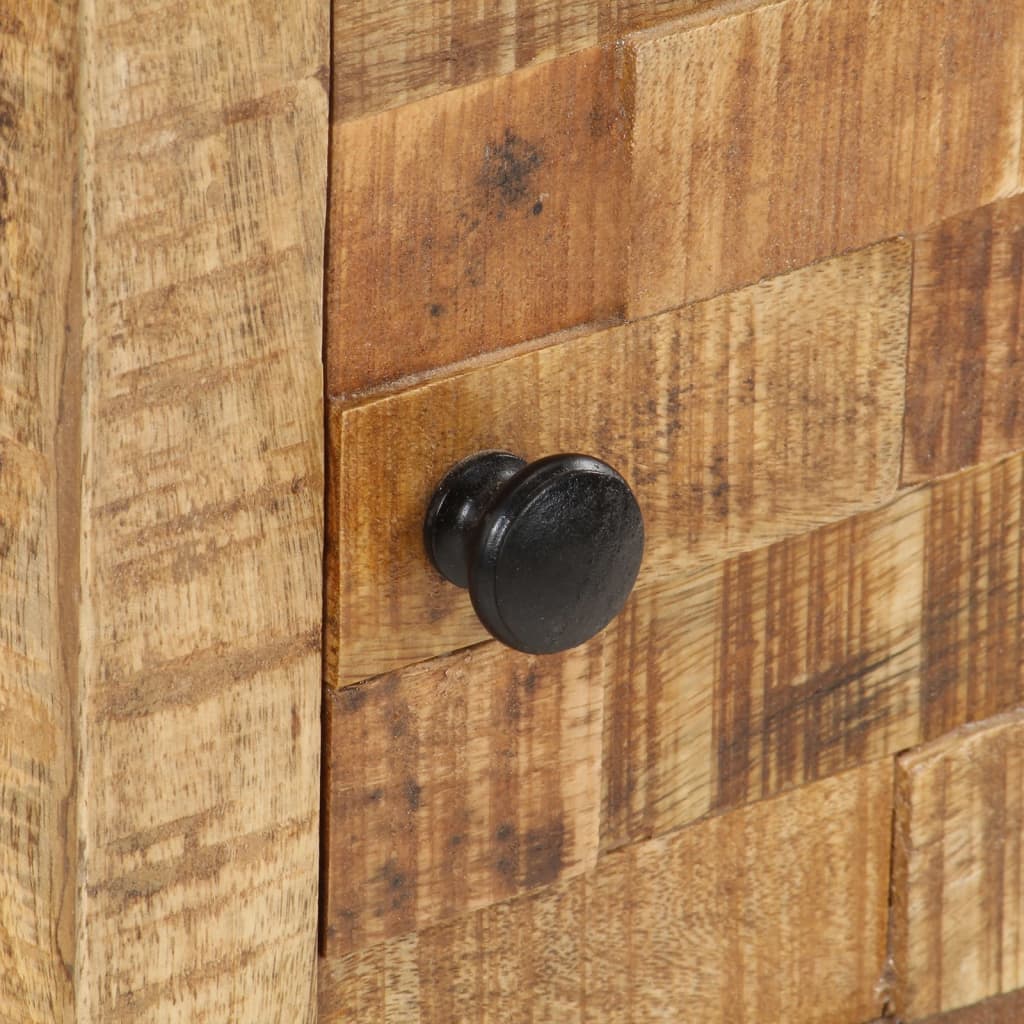 Esta mesita de noche de madera emana un encanto rústico a tu hogar actual. Hecha de madera maciza de mango, una madera dura tropical con fuerza para soportar peso y también soportar el desgaste del tiempo, esta mesita de noche es estable y duradera. La artesanía y las hermosas vetas de la madera hacen que cada mueble sea único y ligeramente diferente al siguiente. Tiene un gran compartimento detrás de una puerta para guardar tus artículos. La robusta superficie de la mesa se puede utilizar para exhibir elementos decorativos. Incluso sirve como mesita de noche, armario de almacenamiento, mesa auxiliar, etc. Nota importante: Los colores y las vetas de la madera varían de una pieza a otra, por lo que cada una es única; la entrega es aleatoria.
