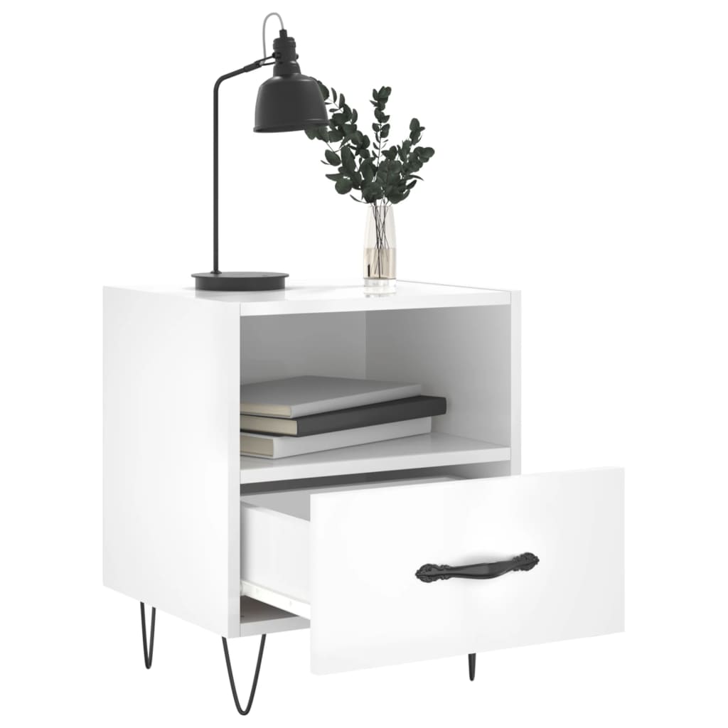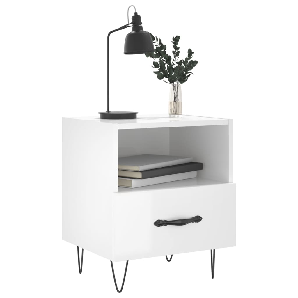 ¡Da un toque de encanto moderno a la casa con esta mesita de noche! Material duradero: La madera contrachapada tiene una calidad excepcional, con una superficie lisa y también cuenta con fuerza, estabilidad y resistencia a la humedad. Amplio espacio de almacenaje: La mesita de noche tiene un compartimento y un cajón, por lo que ofrece un amplio espacio de almacenaje para mantener al alcance libros, aparatos multimedia y otros objetos. Función expositora: También puedes colocar tus fotos favoritas, adornos o flores en la superficie de esta mesita auxiliar para alegrarte la vida. Patas de metal: Las patas metálicas añaden un estilo tranquilo a la casa a la vez que garantizan la estabilidad.