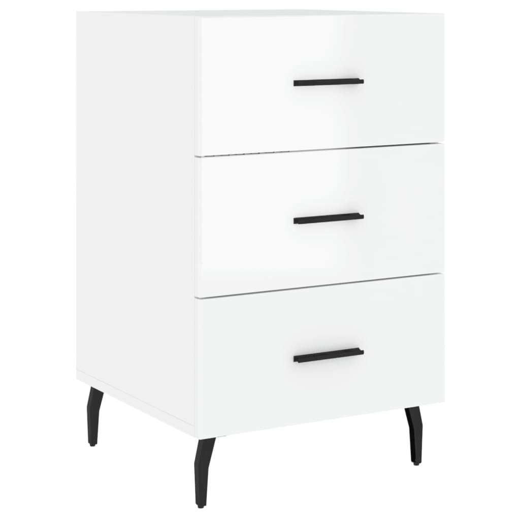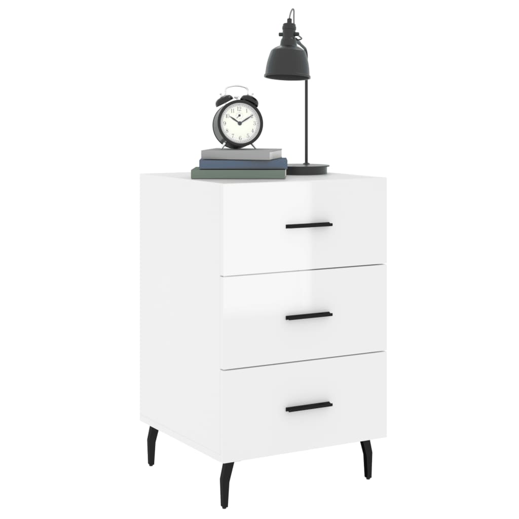 ¡Da un toque de encanto moderno a la casa con esta mesita de noche! Material duradero: La madera de ingeniería tiene una calidad excepcional, con una superficie lisa y también cuenta con fuerza, estabilidad y resistencia a la humedad. Almacenaje amplio: La mesita de noche tiene cajones, que ofrecen un amplio espacio de almacenaje para mantener al alcance libros, aparatos multimedia y otros objetos.Función expositora: También puedes colocar tus fotos favoritas, adornos o flores en la superficie de esta mesita auxiliar para alegrarte la vida. Patas de metal: Las patas metálicas añaden un estilo tranquilo a la casa a la vez que garantizan la estabilidad. Advertencia: Para evitar que vuelque, este producto debe usarse con el dispositivo de fijación a la pared incluido.