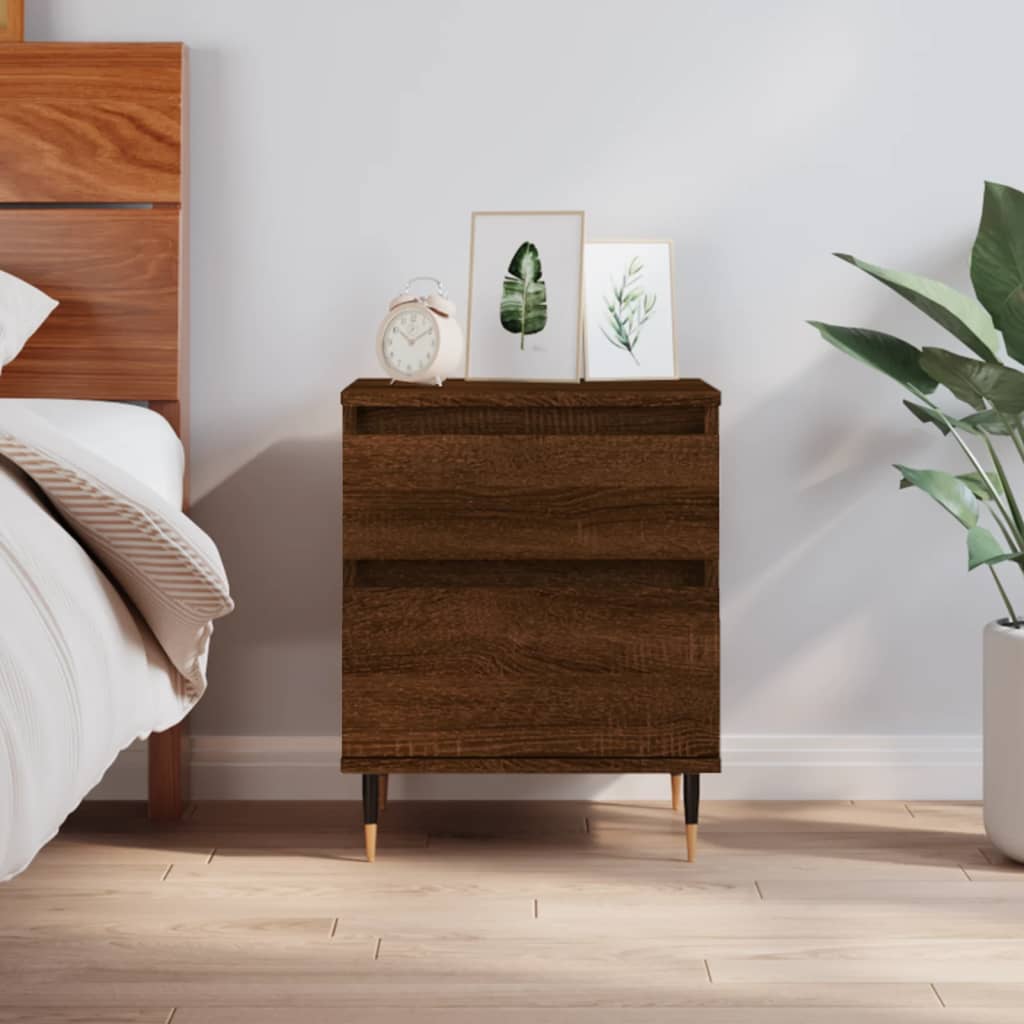 Esta moderna mesita de noche, con un diseño elegante y clásico, está destinada a mejorar el interior de la casa. Material duradero: La madera de ingeniería es de una buena calidad con superficie lisa y también se caracteriza por su fuerza, estabilidad y resistencia a la humedad. Hecha de madera de ingeniería, la mesita de noche es fácil de limpiar con un paño húmedo.Amplio espacio de almacenaje: La mesita de noche tiene un cajón y un compartimento con una puerta, por lo que ofrece un espacio amplio para guardar bien organizados y al alcance revistas, libros, mandos a distancia y otros objetos pequeños.Superficie resistente: La robusta superficie de la mesilla de noche es ideal para colocar objetos decorativos, marcos de fotos o plantas.Patas de metal: Las patas de metal le dan un estilo moderno y tranquilo a la casa mientras garantizan su estabilidad. Advertencia:Para evitar que vuelque, este producto debe usarse con el dispositivo de fijación a la pared incluido.