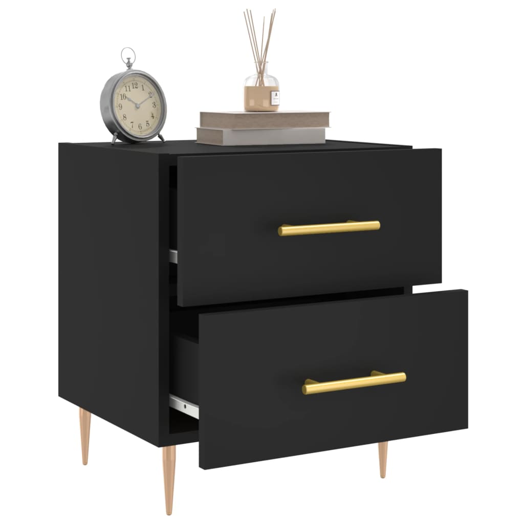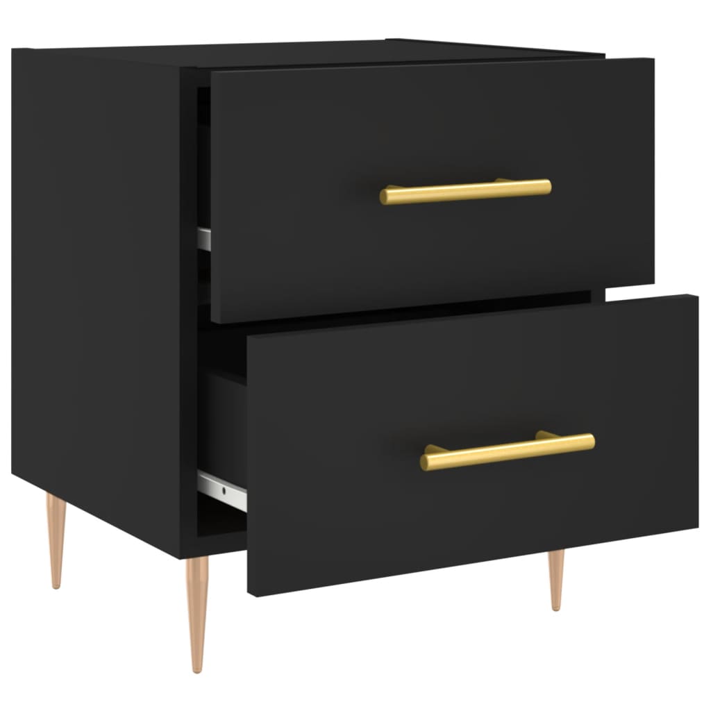 ¡Da un toque de encanto moderno a la casa con esta mesita de noche! Material duradero: La madera contrachapada tiene una calidad excepcional, con una superficie lisa y también cuenta con fuerza, estabilidad y resistencia a la humedad. Almacenaje amplio: La mesita de noche tiene cajones, que ofrecen un amplio espacio de almacenaje para mantener al alcance libros, aparatos multimedia y otros objetos.Función expositora: También puedes colocar tus fotos favoritas, adornos o flores en la superficie de esta mesita auxiliar para alegrarte la vida. Patas de metal: Las patas metálicas añaden un estilo tranquilo a la casa a la vez que garantizan la estabilidad.