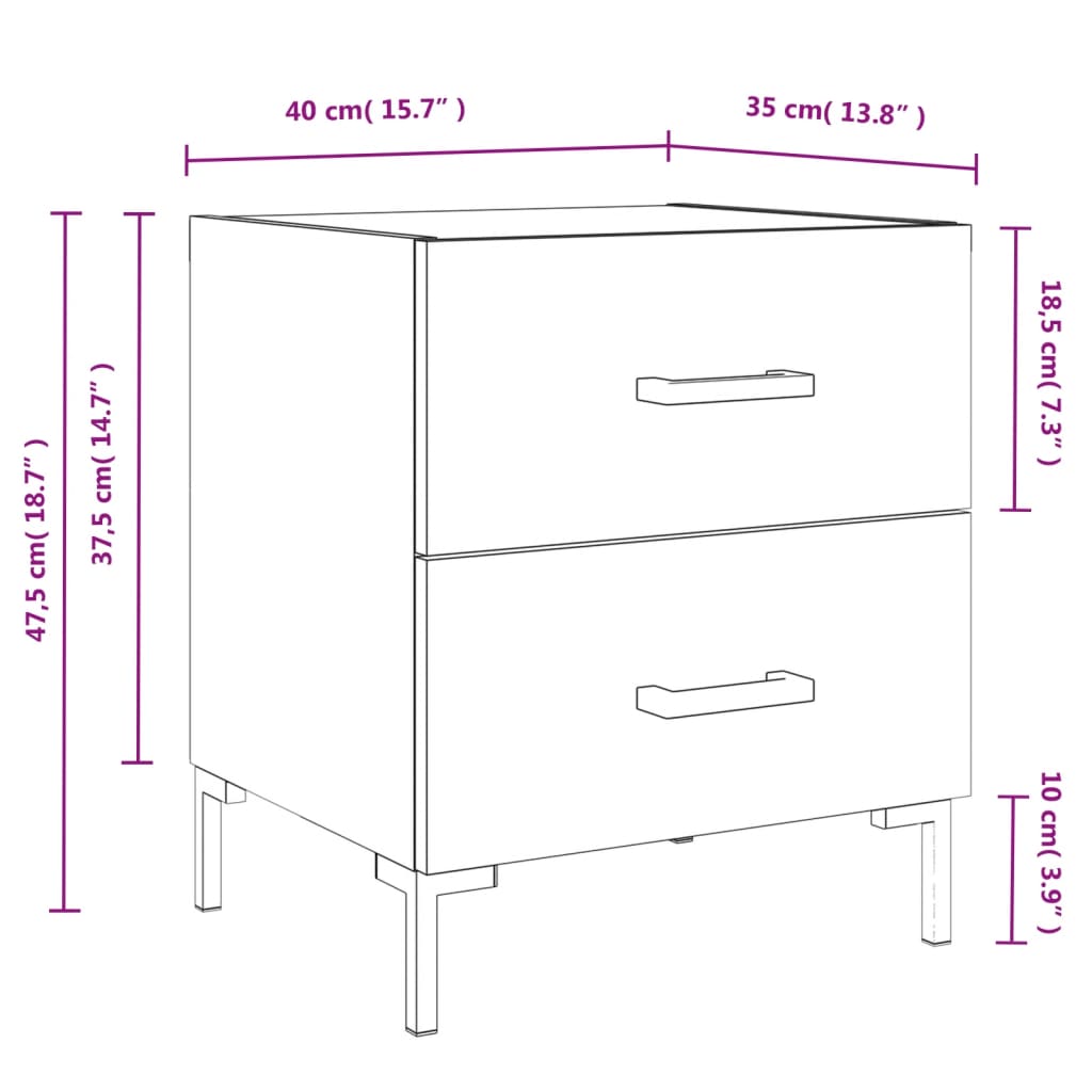 ¡Da un toque de encanto moderno a la casa con esta mesita de noche! Material duradero: La madera contrachapada tiene una calidad excepcional, con una superficie lisa y también cuenta con fuerza, estabilidad y resistencia a la humedad. Almacenaje amplio: La mesita de noche tiene cajones, que ofrecen un amplio espacio de almacenaje para mantener al alcance libros, aparatos multimedia y otros objetos.Función expositora: También puedes colocar tus fotos favoritas, adornos o flores en la superficie de esta mesita auxiliar para alegrarte la vida. Patas de metal: Las patas metálicas añaden un estilo tranquilo a la casa a la vez que garantizan la estabilidad.