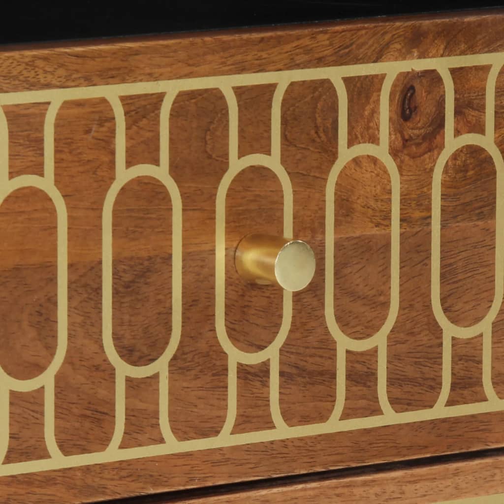 Esta mesita de noche, con un diseño elegante, es un aporte atemporal para la decoración de tu hogar. Madera maciza de mango: La madera maciza de mango es una madera dura, tropical y resistente, que sirve para fabricar muebles robustos. Las bonitas vetas de la madera hacen que cada mueble sea ligeramente diferente al resto. Hecho de madera maciza de mango, el mueble es duradero y estable.Amplio espacio de almacenaje: La mesita de noche está diseñada con 2 cajones y 1 compartimento para guardar las cosas organizadas y al alcance.Superficie estable: La superficie de este mueble auxiliar es perfecta para exponer objetos decorativos, marcos de fotos y plantas.Patas resistentes: Las patas de hierro aumentan la robustez y estabilidad de los muebles del dormitorio.Estilo retro: Esta mesita de noche con motivos florales tallados a mano aporta el lujo del estilo retro a tu decoración, siendo el foco de atención de tu habitación. Información útil:Cada artículo es único, con variaciones de color y veta. La entrega es aleatoria garantizando la exclusividad y la individualidad del producto. Advertencia:Para evitar que vuelque, este producto debe usarse con el dispositivo de fijación a la pared suministrado.