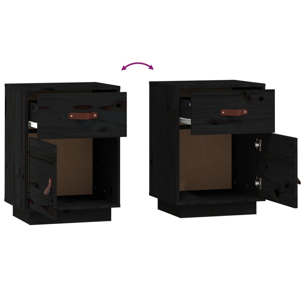 Mesita de noche madera maciza de pino negro 40x34x55 cm