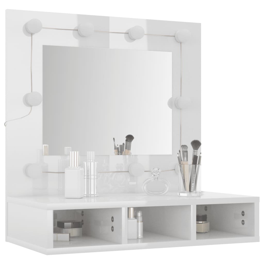 ¡Añade un toque agradable al aspecto de tu habitación con este mueble con espejo y LED! Material duradero: La madera contrachapada tiene una calidad excepcional, con una superficie lisa y también cuenta con fuerza, estabilidad y resistencia a la humedad.Luces LED: El armario con espejo tiene bombillas LED con USB, que se pueden cambiar fácilmente de modo cálido a blanco frío. Las bombillas LED integradas alrededor del espejo iluminan tu belleza.Modos de instalación flexibles: Este armario con espejo y LED se puede colocar encima de la cómoda de forma estable o montarlo sobre la pared para no ocupar espacio del suelo.Espacio de almacenaje suficiente: Gracias a la disposición de los estantes abiertos, tienes espacio y almacenaje de sobra para todos tus cosméticos. Nota:Cada producto viene con un manual de montaje en la caja para facilitar el montaje.Los tornillos y los tacos para el interior de la pared no están incluidos. Busca y utiliza tornillos y tacos adecuados para tus paredes. Si no lo tienes claro, busca asesoramiento profesional. Lee y sigue cada paso de las instrucciones cuidadosamente.