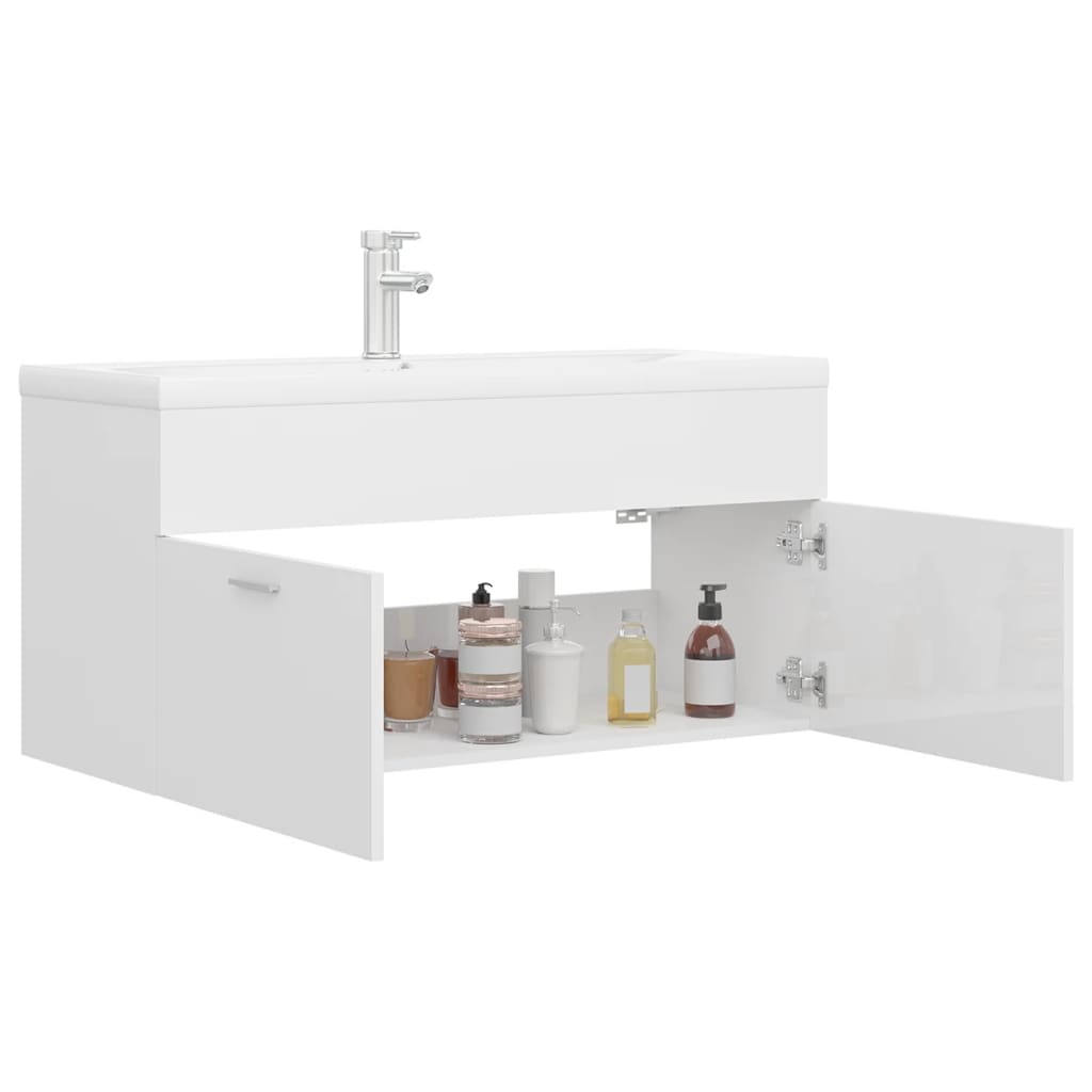 Este armario fregadero con lavabo incorporado es una combinación perfecta para tu baño o aseo con un aspecto llamativo y ordenado. El armario es de madera de ingeniería, lo que lo hace robusto y estable. El armario de almacenamiento tiene 1 compartimento y 2 puertas, ofreciendo un amplio espacio para almacenar artículos. Cabe perfectamente debajo del lavabo y hace que el almacenamiento en el baño sea bastante práctico. Hecho de cerámica, el lavabo no solo puede servir como recipiente para el uso diario, sino también como adorno en tu casa. Gracias a su diseño vanguardista y moderno, este lavabo definitivamente se adaptará a cualquier decoración. Un rebosadero también está equipado para hacer salir el agua cuando se llena demasiado. Su superficie acristalada aporta un diseño moderno pero elegante. Además, el armario y el lavabo son fáciles de limpiar con un paño húmedo. Ten en cuenta que el grifo y el escurridor de empuje con función de desbordamiento están incluidos en la entrega.