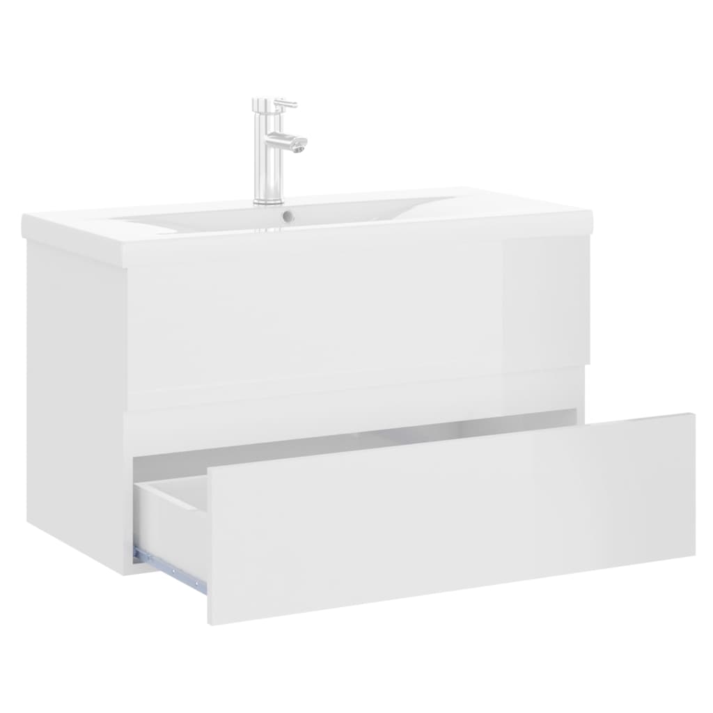Este armario fregadero con lavabo incorporado es una combinación perfecta para tu baño o aseo con un aspecto llamativo y ordenado. El armario es de madera contrachapada, lo que lo hace robusto y estable. El armario tiene 1 cajón, que ofrece un amplio espacio de almacenamiento para guardar artículos en tu baño. Encaja perfectamente debajo del fregadero y hace que el almacenamiento en el baño sea bastante práctico. Hecho de cerámica, el lavabo no solo puede servir como recipiente para el uso diario, sino también como adorno en tu casa. Gracias a su diseño vanguardista y moderno, este lavabo definitivamente se adaptará a cualquier decoración. Un rebosadero también está equipado para hacer salir el agua cuando se llena demasiado. Su superficie acristalada aporta un diseño moderno pero elegante. Además, el armario y el lavabo son fáciles de limpiar con un paño húmedo. Nota: El grifo y el escurridor de empuje con función de rebosadero están incluidos en el suministro. El grifo es de agua fría y caliente, y si necesitas agua caliente, hay que conectar un calentador de agua.