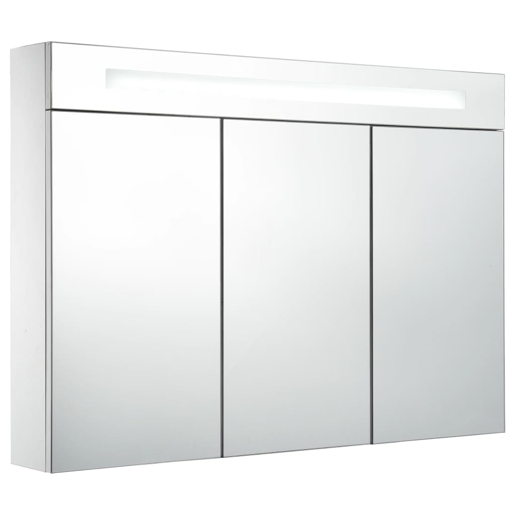 ¡Introduce un look bonito en tu baño con nuestro armario de tocador con espejo LED! ¡Nuestro armario con espejo de pared con LED agrega un toque de estilo moderno y una luz suave e iluminadora a cualquier habitación! Está hecho de tablero MDF de calidad con acabado de melamina, lo que garantiza el uso a largo plazo. Con tubo LED integrado, puedes verte en la luz más real para maquillarte, el arreglo personal y cuidado de la piel y puede iluminar tu habitación, tu cara y tu sonrisa. Puedes encender/apagar fácilmente la luz con el botón inferior. Además, tres puertas revelan 5 estantes dentro del armario, que ofrecen un amplio espacio de almacenamiento en el baño. Caben bien tus artículos de tocador y de baño esenciales, como jabones, champú, pasta de dientes, etc. ¡Elegante y funcional, este armario seguramente hará que el diseño de tu habitación sea originalmente excepcional! El mueble es fácil de instalar en la pared. Nota: El producto tiene un conector USB, pero la fuente de alimentación USB de 5V certificada no está incluida.