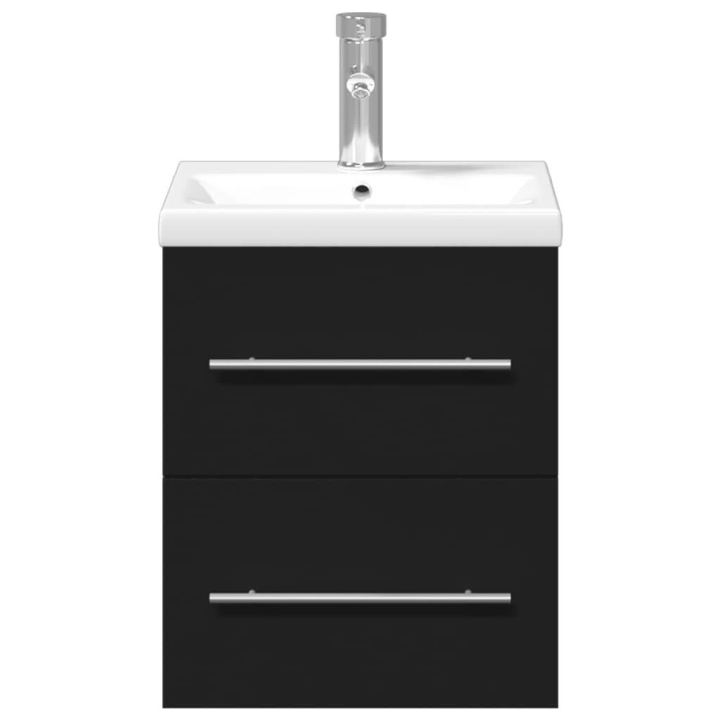 Este elegante mueble de baño con lavabo integrado y amplio espacio de almacenaje es un aporte excelente para el cuarto de baño, ¡ya que le dará un aspecto ordenado y llamativo! Material robusto: El armario para lavabo está hecho de madera contrachapada, que tiene una calidad excepcional, con una superficie lisa y también cuenta con fuerza, estabilidad y resistencia a la humedad.Amplio almacenaje: El armario de baño posee 1 cajón, que ofrece un amplio espacio de almacenamiento para guardar artículos en el baño.Función de montaje en la pared: El armario del baño puede montarse en la pared para añadir espacio de almacenamiento adicional. Así podrás aprovechar al máximo el espacio del suelo y mantener la zona limpia.Elegante lavabo: El lavabo del baño está hecho de cerámica lisa de larga duración y fácil limpieza. La superficie esmaltada aporta un diseño moderno y elegante a la vez.Práctico rebosadero: El lavabo está equipado con una opción para evitar rebosamientos y permitir que el agua salga si se llena demasiado. Información útil:Los tornillos y los tacos para el interior de la pared no están incluidos. Busca y utiliza tornillos y tacos adecuados para tus paredes. Si no lo tienes claro, busca asesoramiento profesional. Lee y sigue cada paso de las instrucciones cuidadosamente.El grifo y el escurridor de empuje con función de rebosadero están incluidos.El grifo es de agua fría y caliente, y si necesitas agua caliente, hay que conectar un calentador de agua.