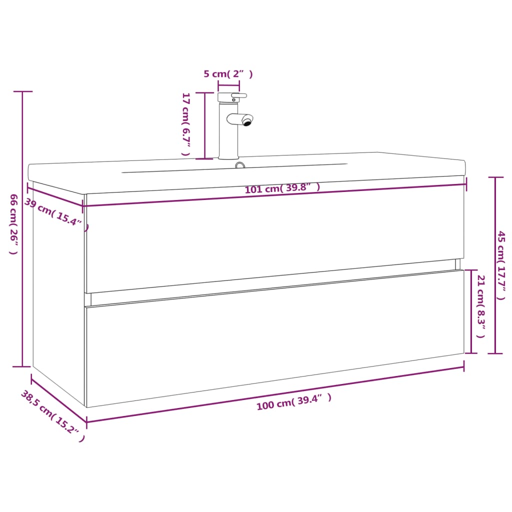 Este elegante mueble de baño con lavabo integrado y amplio espacio de almacenaje es un aporte excelente para el cuarto de baño, ¡ya que le dará un aspecto ordenado y llamativo! Material robusto: El armario para lavabo está hecho de madera contrachapada, que tiene una calidad excepcional, con una superficie lisa y también cuenta con fuerza, estabilidad y resistencia a la humedad.Amplio almacenaje: El armario de baño posee un cajón, que ofrece un amplio espacio de almacenamiento para guardar artículos en el baño.Diseño práctico: La parte superior de este armario de baño es ideal para colocar el lavamanos.Función de montaje en la pared: El armario del baño puede montarse en la pared para añadir espacio de almacenamiento adicional. Así podrás aprovechar al máximo el espacio del suelo y mantener la zona limpia.Rebosadero: También está equipado con un agujero de desagüe para que fluya el agua cuando se llena demasiado. Nota:Los tornillos y los tacos para el interior de la pared no están incluidos. Busca y utiliza tornillos y tacos adecuados para tus paredes. Si no lo tienes claro, busca asesoramiento profesional. Lee y sigue cada paso de las instrucciones cuidadosamente.El grifo y el escurridor de empuje con función de rebosadero están incluidos.Cada producto viene con un manual de montaje en la caja para facilitar el montaje.El grifo es de agua fría y caliente, y si necesitas agua caliente, hay que conectar un calentador de agua.