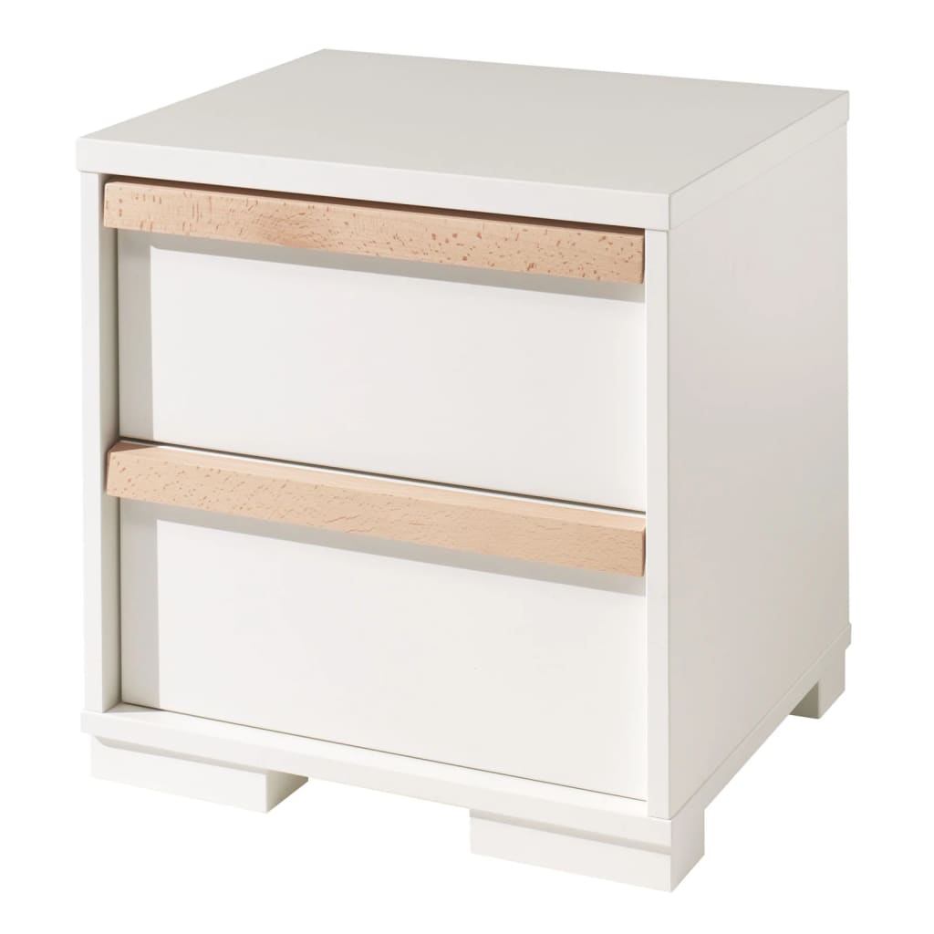 La delicada mesilla de noche con 2 cajones London de Vipack es un excelente aporte para tu dormitorio, el de los peques, el cuarto de juegos o cualquier estancia donde necesites almacenaje adicional. La mesilla de noche posee un diseño sencillo e inteligente con dos cajones con sistema de cierre suave. Está hecha de aglomerado recubierto de melamina, con detalles de madera maciza de pino. Con un diseño belga y un estilo escandinavo, esta mesita de noche dará estilo y comodidad a cualquier estancia. Puedes combinar este mueble con otros artículos de la colección London de Vipack.