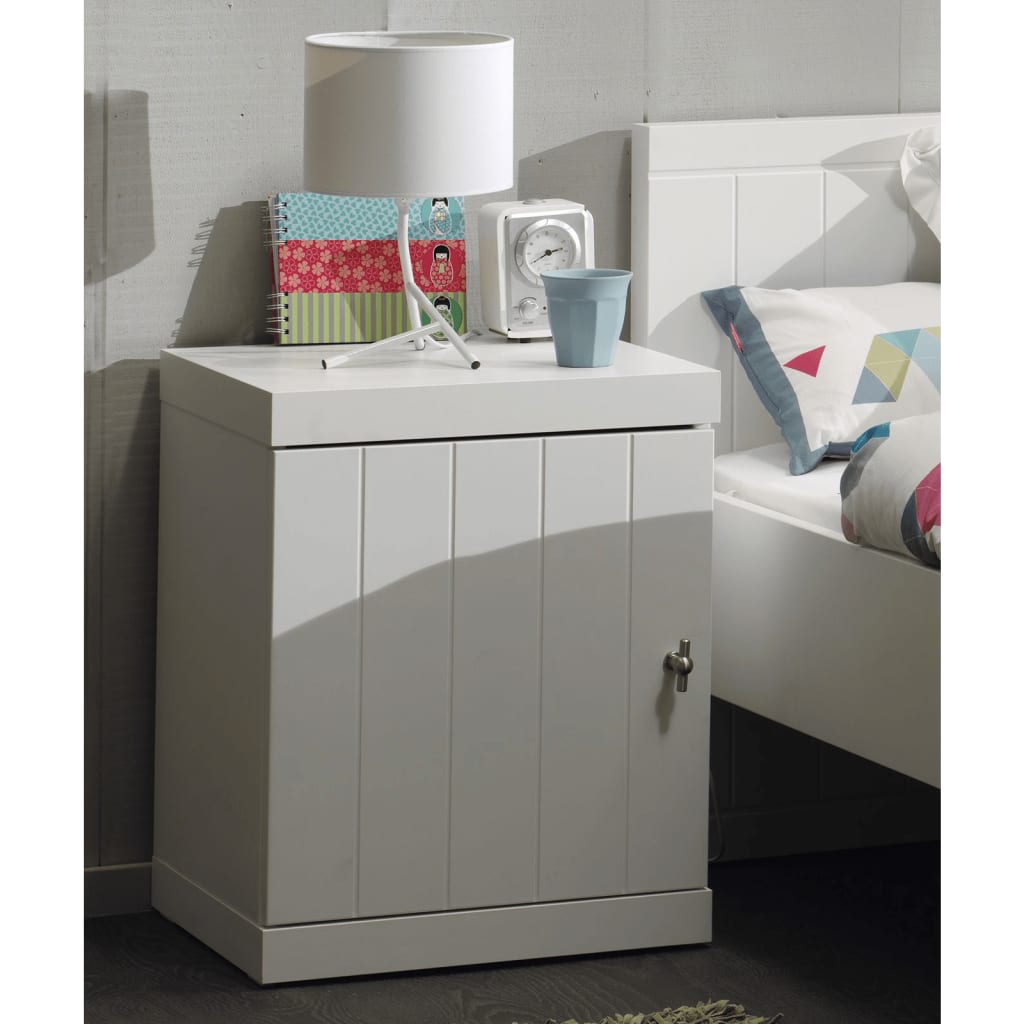 La mesita de noche Robin de Vipack es una gran opción para tu dormitorio o el de los niños. La mesilla de noche posee una puerta y un estante en el interior, y está hecha de MDF lacado en blanco. La puerta tiene un acabado con finas ranuras verticales y posee un sistema de cierre suave. Con un diseño belga y un estilo escandinavo, esta bonita mesita de noche dará estilo y comodidad al cuarto de los niños. Se puede combinar con otros muebles de la colección Ronbin de Vipack.